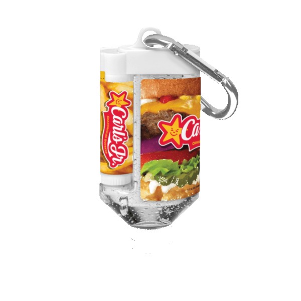 Ever go to a big outdoor event and wish you had hand sanitizer on you? Um, yes you have, and so has everyone else! That’s why our patented duo bottle hand sanitizer and lip balm is a best-seller. The hand sanitizer is proudly made in the USA, manufactured in an FDA-registered facility. And our SPF 15 lip balm is oxybenzone, PABA, and gluten-free. Customize these incredibly useful personal care products with your choice of carabiner color, lip balm flavor, and full-color label. Complies with CPSIA, FDA, Prop 65.