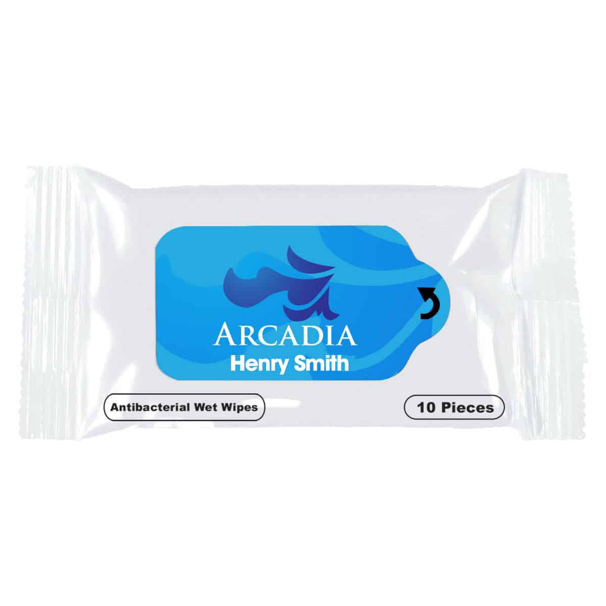 Contains 10 wipes. Meets FDA requirements. Light citrus scent. Complies with Prop 65. 6″ W x 2.75″ H